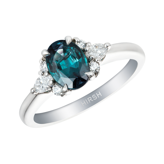 Alexandrite Papillon style ring with Collection quality side stones creating the pretty Butterfly effect.